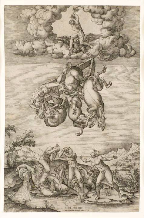 So von Nicolas Beatrizet (1507–1565) mit seinem Gemälde „Phaetoni langemine“ von etwa 1542. Das Bild ist im Mikkeli muuseum zu bewundern.